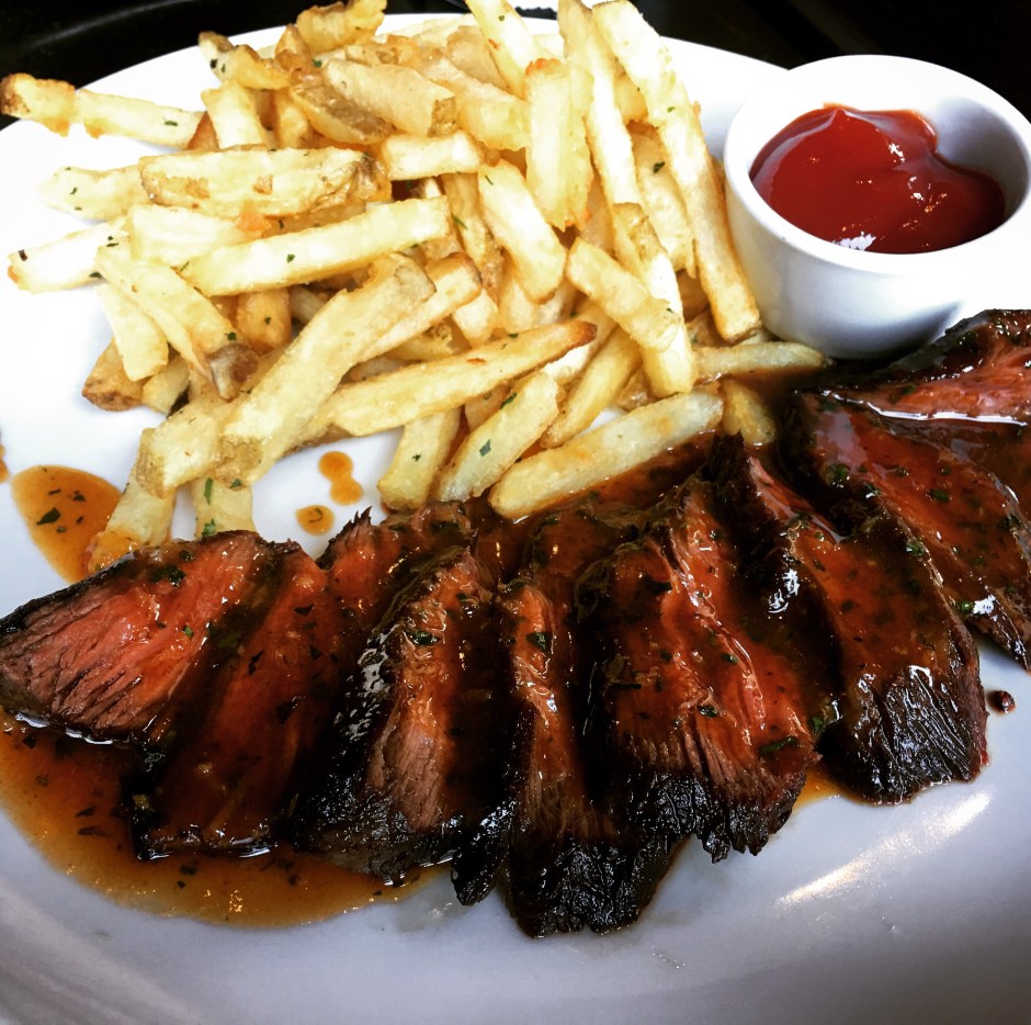 In its new phase, the designers sought to unveil even more of the original look of the historical building, down to the original brick, tile and ironwork.  Now a café, bakery, bar and bistro, Republique boasts a tasty all-day menu with such varied favorites as Brioche French Toast and Kimchi Fried Rice, and also special lunch and dinner menus with items like succulent Rosemary Chicken and, our favorite, Steak Frites.