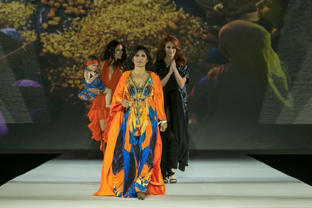 She unleashed her colorful Fall/Winter 2017 collection on the runway at Style Fashion Week L.A. on March 10th and the runway was ruled by celebrities including actress and celebrity DJ Caroline D’Amore with her two-year old daughter Isabella Viking, Bollywood actresses Pooja Batra and Kalpana Pandit, transgender model and America’s Next Top Model contestant Quei Tann and actress and Supermodel Angie Everhart.