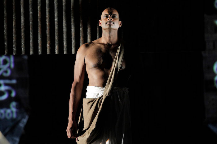 The story is told in three acts, each overseen by a great historical figure — Tolstoy, Tagore and Martin Luther King (who continued Gandhi’s vision) and using lines from the Bhagavad Gita. The narrative is depicted in symbolic scenes, resulting in a form of communal meditation with Glass’ music, and giving the audience plenty of time to reflect and connect to the non-violent message. Throughout his journey, Gandhi changed many lives as well as encountered lots of opposition and ridicule. Perhaps the most disturbing scene is at the beginning of Act Two in which he faces the relentless mockery of the European middle class to the choruses of ” HA!, HA!, HA!” Then, there is the rousing appearance of Mrs. Alexander AKA “lady with the parasol” (mezzo soprano, Niru Lou) who gives Gandhi succor, and who one cannot help but relate to the Statue of Liberty while reflecting on the grave ironies of our current political climate.