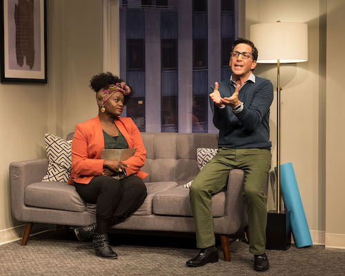 In steps sassy reporter, River (Shoniqua Shandai) — a “former fat” who has recently lost 206 pounds through dieting and exercise, and thanks to her new (dubious) book, is joining the celebrity ranks, too. When she unleashes an exposé on the life of Dr. Baer, she jeopardizes his career, and sets him up as a rival obsessed with turning the tables. The hunter now becomes the hunted as Baer spends every waking minute unearthing every minute detail of her life (including, hilariously, printing all her tweets) in order to destroy her. Stretching about two-hours, the play feels a bit “talky”, but the humor is intact, and the topics hard-hitting. Jackie Chung shines as Dr. Baer ‘s assistant, Kelly, in a restrained, honest performance. And kudos must be given to set designer, Dane Laffrey who has created multiple versions of the Dr. Baer’s office on a carousel that seamlessly switches to reflect scene changes.