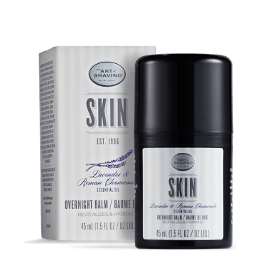 ART OF SHAVING Lavender and Roman Chamomile Overnight Balm The delicate scents of lavender and chamomile impart calming and aromatherapy benefits while jojoba oil, olive oil, and glycerine hydrate parched skin overnight for men. Free from alcohol and synthetic dyes, the balm is suitable even for sensitive skin and works almost like a leave-on mask to keep the skin looking healthy and glowing when you face the day. $45 www.theartofshaving.com