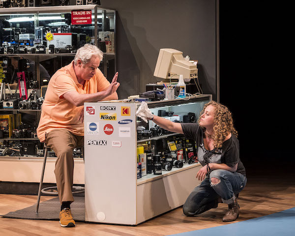 This Steppenwolf Theatre production is directed by Dexter Bullard. Though it runs almost 3-hours, they fleet by astonishingly fast. Letts’ trademark writing is bitterly witty and tragically funny, enabling a formidable ensemble to shine so that even Wheeler’s workmates, the lecherous shop-owner, Michael (Troy West) and resilient employee, Anita (Caroline Neff) make an impact in just a couple of scenes. The revolving set by Todd Rosenthal seamlessly transports us from apartment to bar and camera shop, allowing for a performance flow that is reminiscent of one-take shots in a movie.