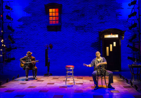 During the 90-minute performance we are introduced to this variety of characters at Miss Nanny’s house through our host, Santiago-Hudson. An astonishing chameleon, he inhabits them all, switching effortlessly from one to another, and without the use of any props or scenery. A scene in which Hudson portrays both Nanny, standing up to a wife beater, and the heated wife beater, is a testament to his acting chops. Although technically categorized as a one-man show, guitarist, Chris Thomas King, sitting on a chair under an obscuring fedora, must be given kudos for supplying a score that’s both playful and melancholy, and which forms the heartbeat of the show.
