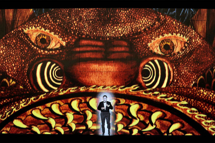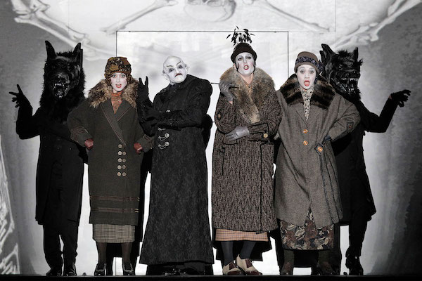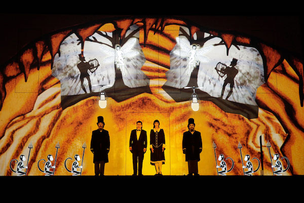 The Komische Oper Berlin version showing at L. A. Opera is stupendously magical, appropriate not only for the holiday season, but also Hollywood due to its silent-movie reminiscence. The dialogue has been switched to text on the screen, and together, Suzanne Andrade and animator, Paul Barritt give us a surreally beautiful, visually stunning tableau against which the allegorical fairy tale unfolds.