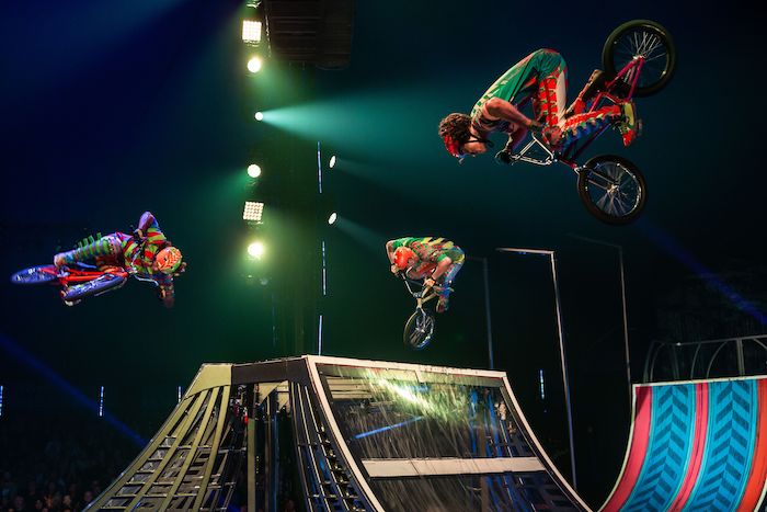 Crowd pleasers include the beginning skit featuring the flashy Mr Wow played by Russia’s hilarious Andrey Kislitsin who also brought laughs in a Washing Machines Nightmare segment, and the nail-biting finale, BMX, which elicited palpable gasps.