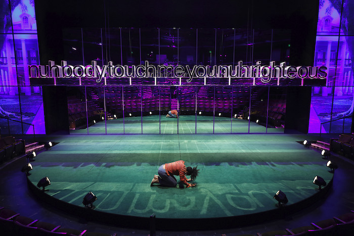 The second part, incisive though somewhat lengthy, places us among the couples as they “process” what they’ve learned about themselves and their partners with the help of researchers — Teá (Chalia La Tour) and Patricia (Irene Sofia Lucio). The “Antebellum Sexual Performance Therapy” is explained as an experimental program “designed to help Black partners re-engage intimately with white partners from whom they no longer receive sexual pleasure.” What, you may ask is Harris trying to tell us? That these black partners need to feel degraded and objectified in order to get their juices flowing? That the racial abuses we suffer are so deeply imbedded in our DNA that they are inescapable and demand ritual exorcism? Love it or hate it, one thing’s for certain; you’ve rarely seen anything like it and will have plenty to ponder about. And isn’t that the best kind of theater?