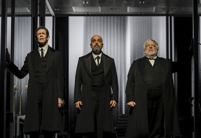 Apparently, when the director first obtained Italian writer Stefano Massini’s novel-in-verse, it was as sprawling and brilliant as it was unwieldy, a practically impenetrable morass that had to be extensively reworked for British and American audiences. Enter Ben Power (The Hollow Crown) who managed to adapt in into a gripping three part drama in which the three actors — Simon Russell Beal (Penny Dreadful, The Hollow Crown), Adam Godley (The Great, Breaking Bad) and Howard W. Overshown play three German Jewish brothers who immigrate to America with dreams of building an empire. The actors play successive generations, slipping in and out of various roles seamlessly as we go from their humble beginnings at a fabric store in antebellum Alabama to the glittering highrise in Wall Street where everything eventually collapsed.