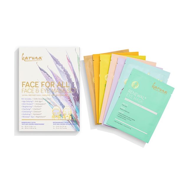 KARUNA Face for All – Face & Eye Mask Set An indispensable pack that addresses multiple skincare concerns. Whether you’re looking for a weekly at-home beauty treatment, or something to take along on a trip, this is the one kit that will exfoliate, hydrate, clarify, renew, brighten, and more. Contains 6 facial masks and also an eye mask. $42 www.karunaskin.com