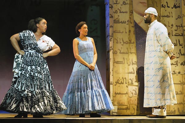 Tenor, Jamez McCorkle (Porgy and Bess, The Return of Ulysses) is a mesmerizing Omar with palpable gravitas and calm depth, his voice as tender as it is searingly poignant. Mezzo Soprano Amanda Lynn Bottoms (Giustino, Finding Wright) makes her triumphal LA Opera debut as his loving mother, Fatima, who, though killed at the beginning of Act I by the slave pillagers, continues to guide and reassure him posthumously. Tenor, Barry Banks skillfully elicits humor despite his dastardly function as the Auctioneer.