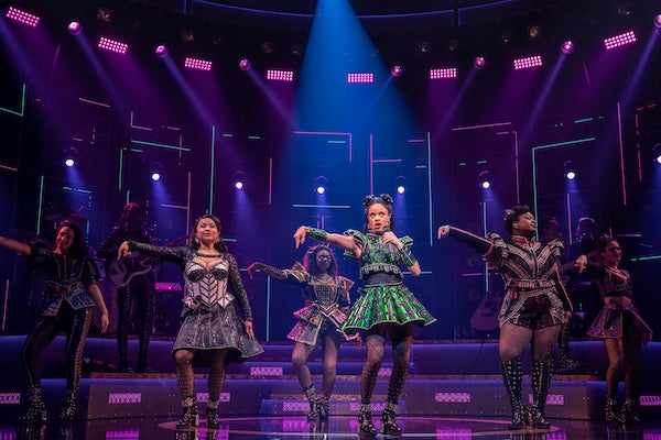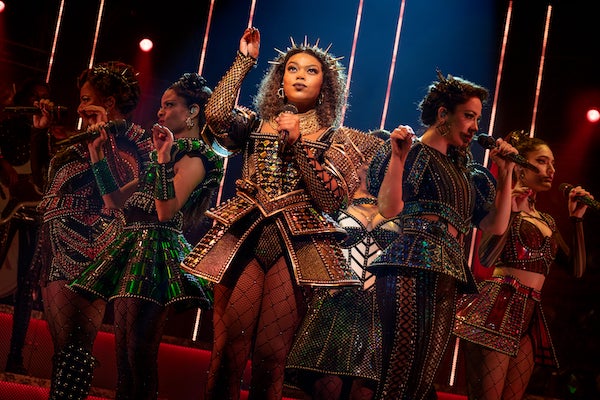 The show’s creators have reimagined the wives as a girl group, with each one taking on the persona of a pop star — Britney Spears, Beyoncé, Avril Lavigne, Nicki Minaj, Ariana Grande, Catherine of Aragon (Khaila Wilcoxon) is a fiery Spanish diva, Anne Boleyn (Storm Lever), is a rebellious punk rocker, Jane Seymour (Natalie Paris) is a sweet balladeer, Anne of Cleves (Olivia Donalson) is a sassy German queen, Catherine Howard (Courtney Mack) is a flirty pop princess, and Catherine Parr (Gabriela Carrillo) a wise and soulful leader. The music is a departure from traditional musical theatre with influences from pop, rock, and electronic dance music. Each wife has her own solo number that showcases her unique style and personality and the group numbers are full of energy and choreography that wouldn’t be out of place in a concert.