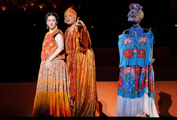 Gabriela Lena Frank’s haunting new opera, ‘El Último Sueño de Frida y Diego,’ traversed the realms of love and mortality as famed muralist, Diego Rivera (baritone, Alfredo Daza) summons his wife, painter Frida Kahlo (mezzo-soprano, Daniela Mack) from the afterlife. The allure of painting again, guided by Catrina (an unrecognizable Ana Maria Martinez) and the spectral presence of Leonardo (Key’mon W. Murrah) impersonating Greta Garbo, draws Frida back to the living. Yet this chance isn’t free from limitations, as the opera reminds us that the human experience encompasses profound joys but also corporeal and emotional anguish.