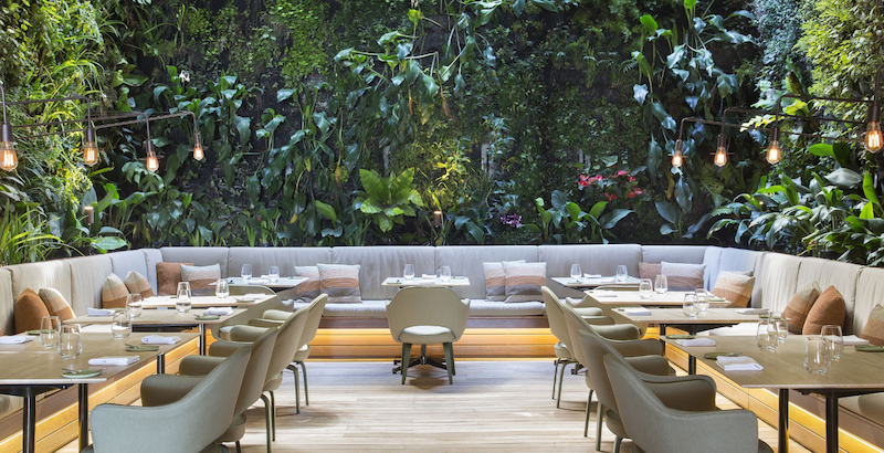 The journey begins long before diners even set foot inside the restaurant, as they are greeted by the iconic “cobogó” facade of the Hotel Emiliano. Designed to harness the natural light and frame the breathtaking views of Copacabana beach, this architectural marvel serves as a moving window into the soul of Emile. Once inside, guests are offered a tough choice; the restaurant’s unique allure lies in its dual ambiances — an interior dining room, adorned with rich dark wooden panels and impeccably coordinated furnishings to exude palpable elegance, or the verdant oasis, where a lush vertical garden sprawls in a patio-style setting, crowned by a retractable roof. Here, nature and culinary artistry harmonize seamlessly, and one feels ensconced in a tropical paradise, a stark contrast to the bustling city.