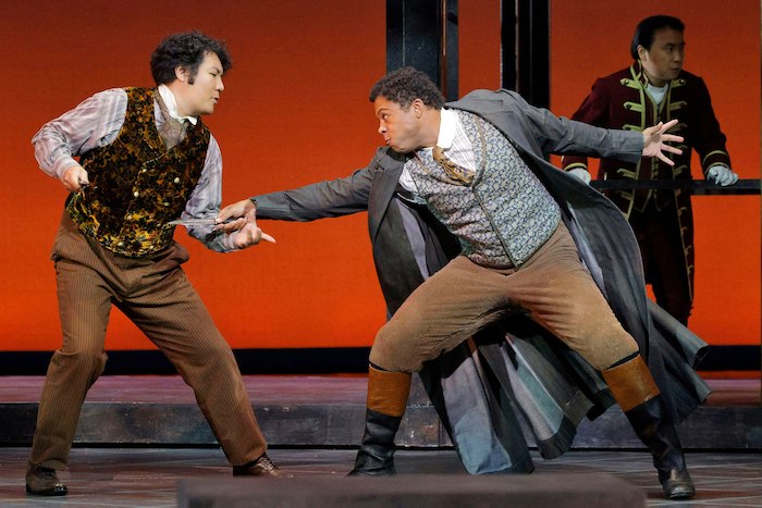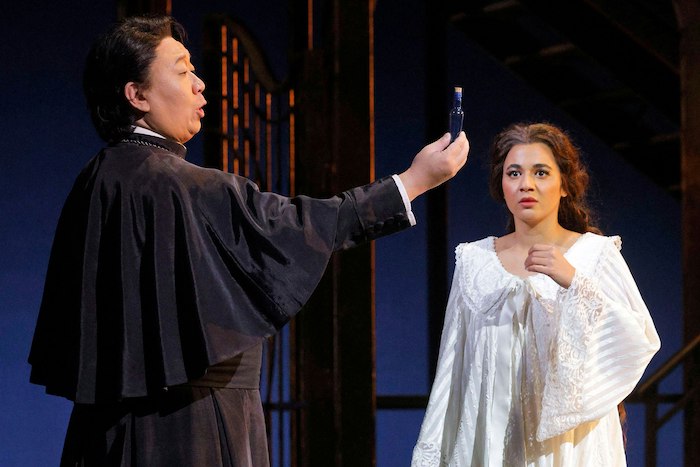 Supporting this romantic narrative, Justin Austin’s Mercutio, the versatile Craig Colclough’s dynamic portrayal of Lord Capulet, and Wei Wu as Friar Laurent add depth and contrast, grounding the tale in maturity and gravity. Yuntong Han, making a notable professional debut as Tybalt, tackles the role’s physical demands with impressive agility and poise, underscored by fight director Andrew Kenneth Moss’s choreography, which heightens the palpable tension of the feud. Margaret Gawrysiak’s Gertrude brings moments of humor and levity that offer a welcome respite from the opera’s relentless pace.