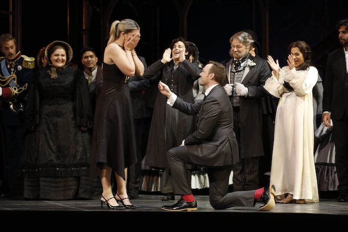 In LA Opera’s evocative staging of Romeo and Juliet, Charles Gounod’s lush, romantic score is brought to life under the skilled baton of Domingo Hindoyan, whose meticulous control of the orchestra allows the music to flow with unrestrained passion, infusing the production with deep, operatic grandeur. Gounod, who had found success with another literary adaptation, Faust, premiered this opera at the Théâtre Lyrique in Paris in 1867, and it remains one of his most beloved works, capturing the tender ardor and tragic depths of Shakespeare’s timeless lovers. The libretto, crafted by Jules Barbier and Michel Carré, capitalizes on the story’s enduring allure while enhancing its operatic scale.