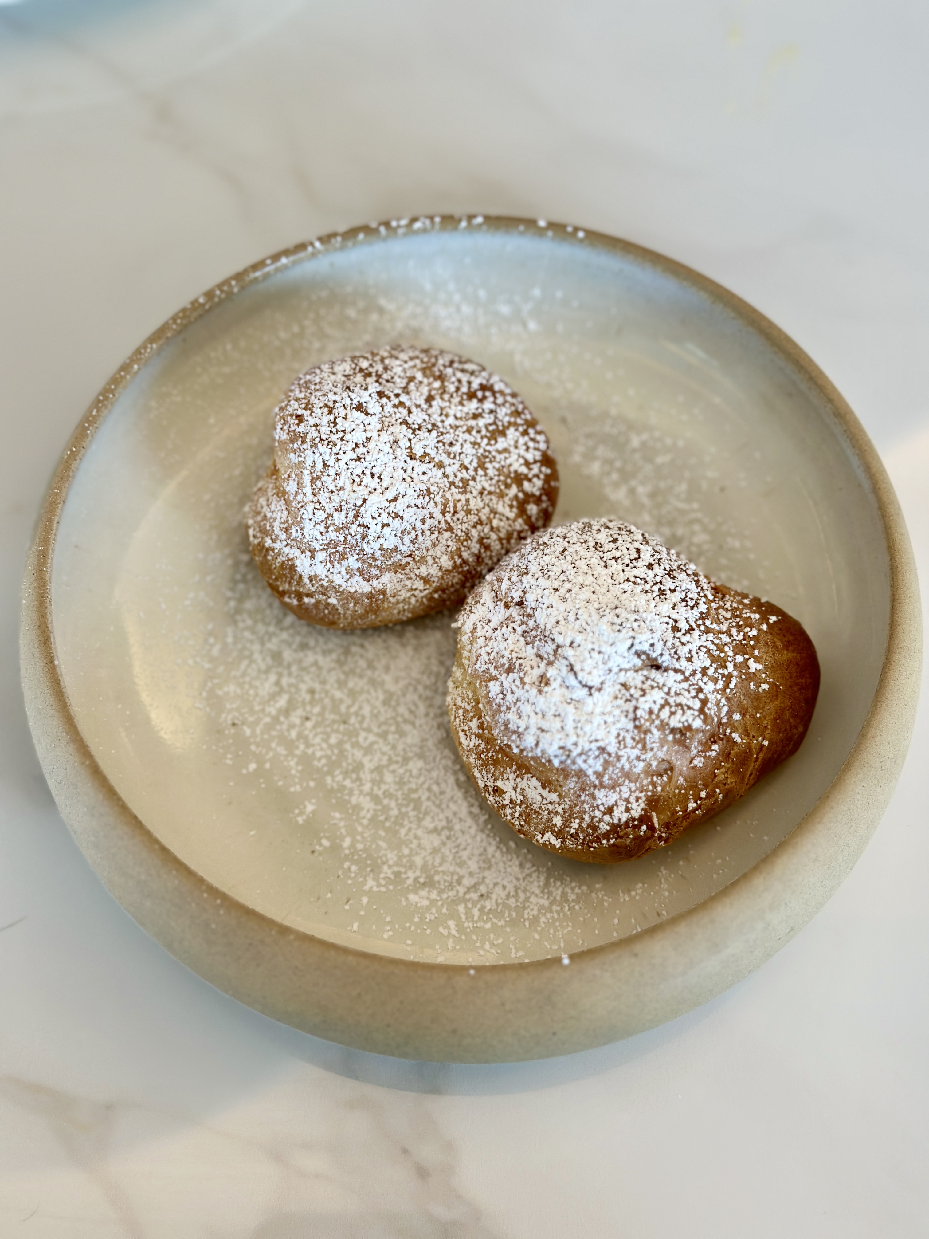 Dessert is a gentle finish: a light, airy cream puff filled with a delicately perfumed cardamom-vanilla cream, its rosy undertones lingering just enough to close the meal on a refined note.