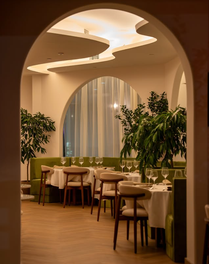 The setting sets the tone. The dining room is expansive and airy, bathed in natural light, with a design that threads Persian cultural references into a contemporary framework. Shelves of Persian books, candleholders, and curated artwork lend the space a sense of identity without veering into pastiche; it feels considered, modern, and rooted.