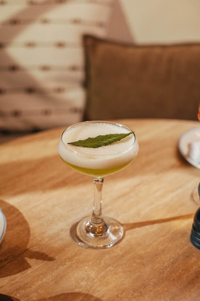 In the kitchen, Chef Eric Cuenin brings classical French technique to a menu rooted in Mediterranean ease, shaping dishes that are both polished and deeply pleasurable. The evening begins with the signature Azur martini, a standout both in presentation and execution. Made with vodka, baby basil, lime, sugar, and a delicate foam, it is the basil leaf—more than a garnish—that defines the drink, lending a softly aromatic note that lingers like a whisper.